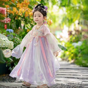 汉服女童春秋新款女宝古风超仙飘逸襦裙小女孩紫色公主国风连衣裙