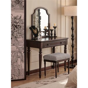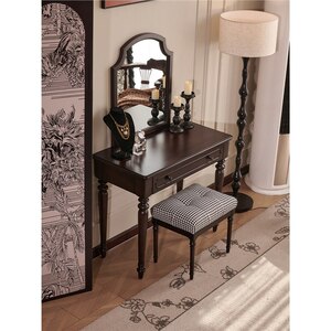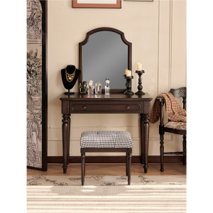 美式复古实木梳妆台梳妆桌带镜子高级感黑色卧室家具妆台