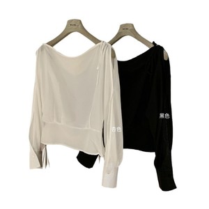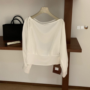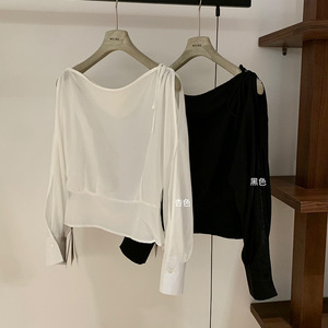 WGWE7049设计感露肩绑带长袖衬衫小众显瘦气质上衣