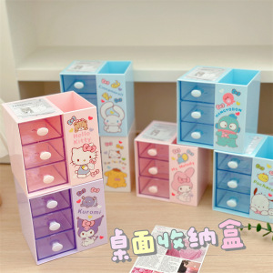 卡通桌面收纳笔筒文具收纳盒3层抽屉小物件收纳盒子学生文具盒