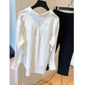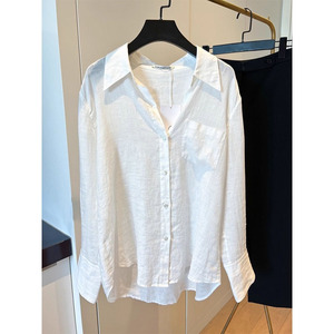 白色棉麻衬衫女春夏防晒薄款设计感小众法式长袖衬衣别致亚麻上衣