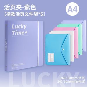升级加厚款【A4横版】活页纽扣袋5个装 紫色外壳1个
