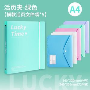 升级加厚款【A4横版】活页纽扣袋5个装 绿色外壳1个