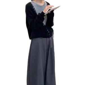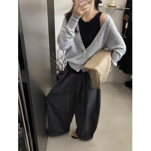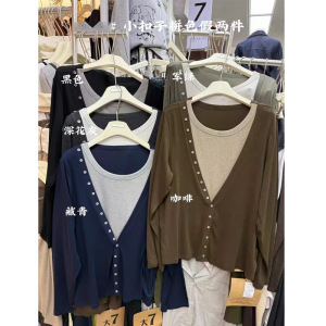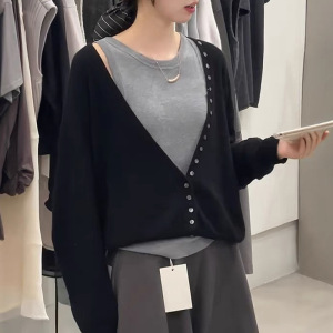 真两件韩系设计感撞色长袖上衣女早秋今年流行高级感宽松短款毛衣