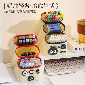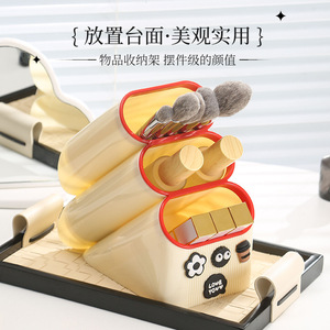 多巴胺卧室桌面收纳盒子大容量斜插式笔筒办公室多层学生文具收纳