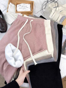 25新款仿羊绒针织阔腿裤女秋冬加绒加厚高腰垂感宽松显瘦休闲直筒