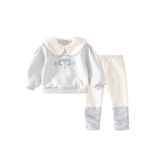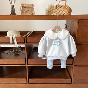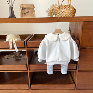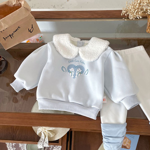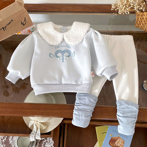 【现货】女童加绒套装2025秋冬新款时髦加绒翻领打底裤卫衣两件套