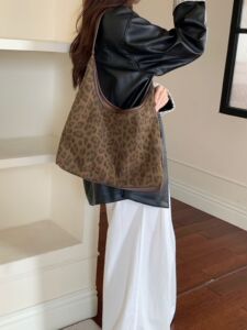 多果女包 韩系ins豹纹斜挎托特包女2025秋冬新款通勤百搭单肩包包