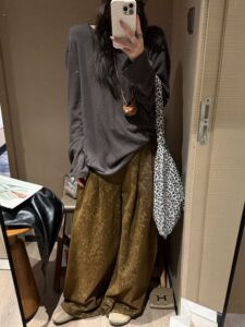老钱风时尚复古水洗印花高腰直筒拖地阔腿裤女2025秋冬印花休闲裤