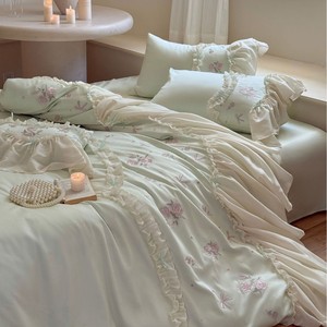 法式雪纺纱 | 奶油风全棉长绒棉床上用品四件套刺绣被套纯棉