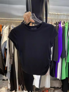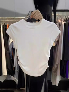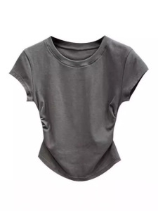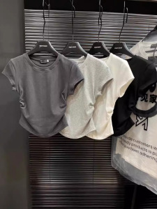 跨境外贸ins辣妹纯欲收腰t恤短袖女夏季纯色打底套头修身上衣女潮
