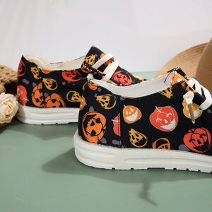 2025新款跨境外贸大码万圣节元素帆布鞋单鞋女亚马逊TEMU代发批发