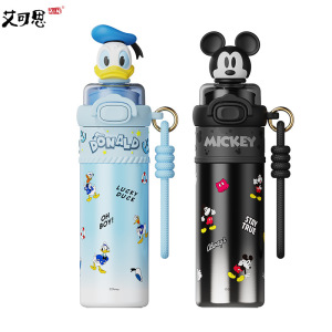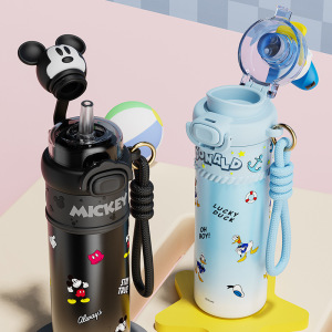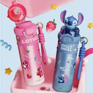 乐趣保温杯316不锈钢吸管杯学生便携双饮杯可爱卡通史迪奇水杯子