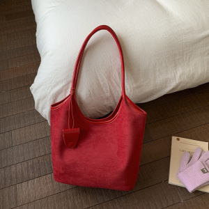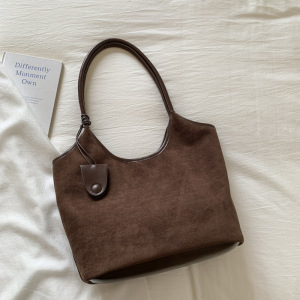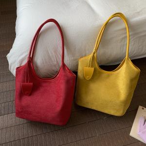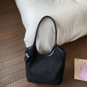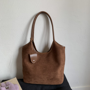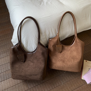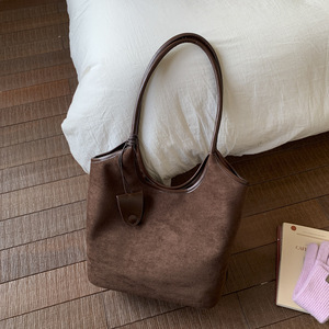 韩系极简托特包2025秋复古慵懒风腋下大包跨境麂皮绒大容量单肩包