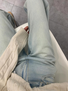 莱赛尔浅蓝色直筒牛仔裤女2025夏秋季小个子高腰显瘦窄版阔腿裤子