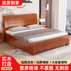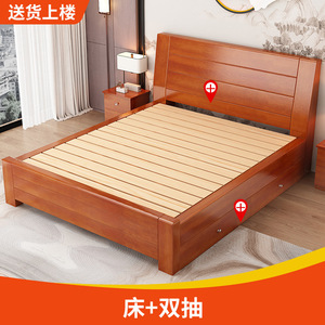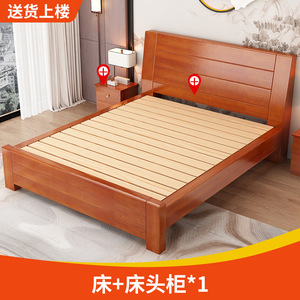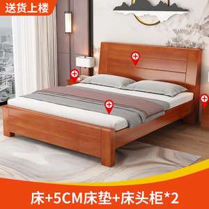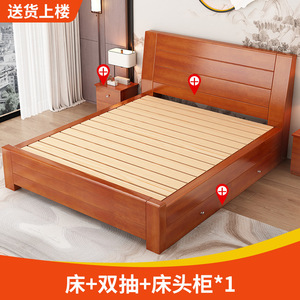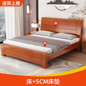 全实木中式床1.8米加厚双人床经济简约家用1.5米单人床1.2m出租房