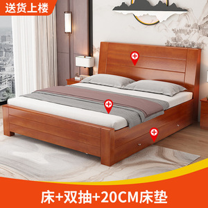 **厂家咖色实木床+20cm床垫+床头柜*1+双抽