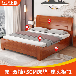 **厂家咖色实木床+5cm床垫+床头柜*1+双抽