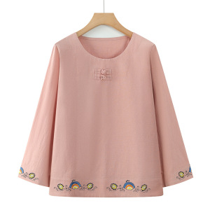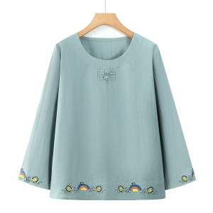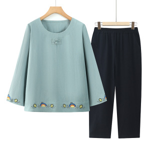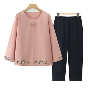 中老年人秋装纯棉套装女奶奶秋季t恤妈妈全棉上衣服老太太两件套