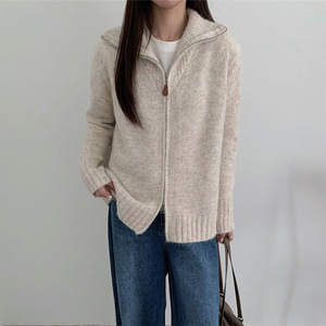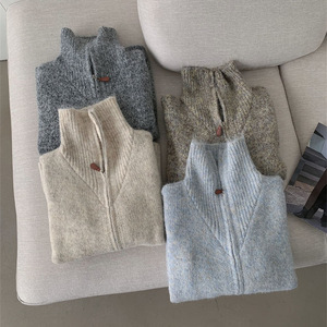 韩系花线双拉链毛衣外套女装秋冬新款宽松慵懒风软糯针织开衫上衣