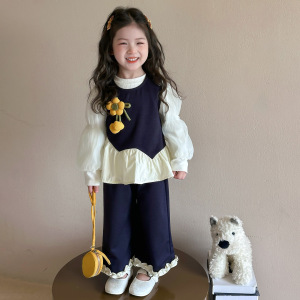 女童韩系春秋款牛仔马甲三件套2025新款小女孩春秋季炸街时髦套装