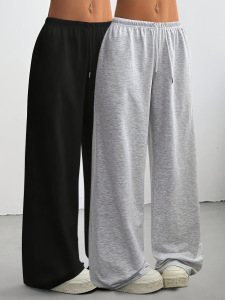 运动裤女春秋款2025新款高腰小个子休闲瑜伽卫裤灰色宽松阔腿裤子