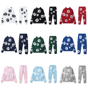 跨境爆款欧码秋冬加绒发泡印花连帽卫衣长裤套装全系列潮工厂批发