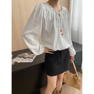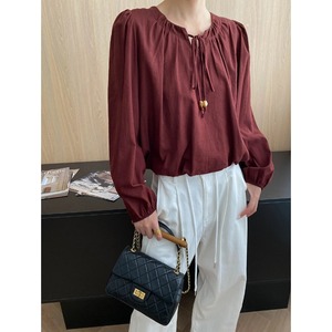 司南 老钱风复古 高级小众花苞串珠系带气质法式长袖衬衫 SN7944