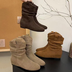 内增高复古勃肯小短靴子女2025新款夏秋配裙子堆堆靴切尔西瘦瘦靴
