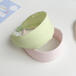 日韩文艺百搭清新暗纹泡泡皱纯色6cm宽边薄款发箍洗脸压发卡头箍