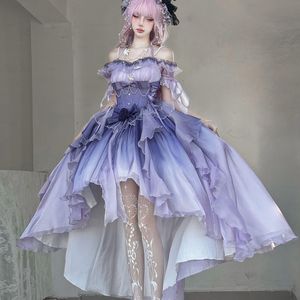 洛丽塔重工拖尾蓬蓬前短后长在逃公主裙蓝色花嫁礼服lolita连衣裙
