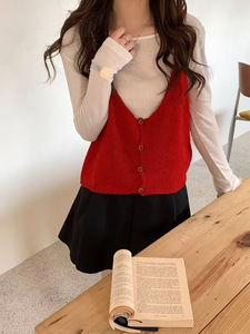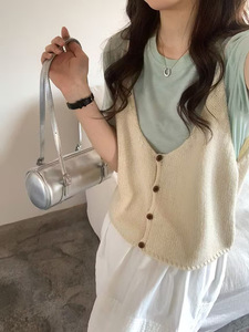 2025秋冬韩系吊带背心外穿针织马甲背心女叠穿别致显瘦V领上衣