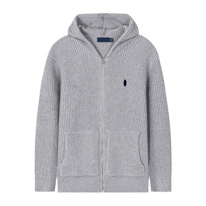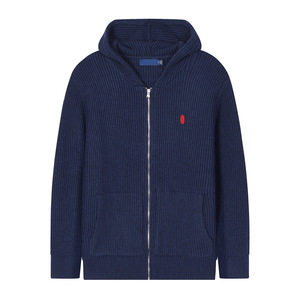 秋冬男士连帽针织衫休闲纯色羊毛混纺小马标厚实棉质毛衣男装外套