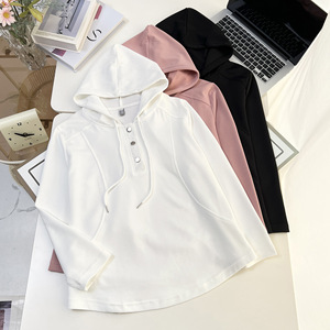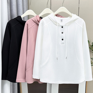 秋装新款大码女休闲连帽半开领长袖上衣200斤胖妹妹百搭帽衫7981