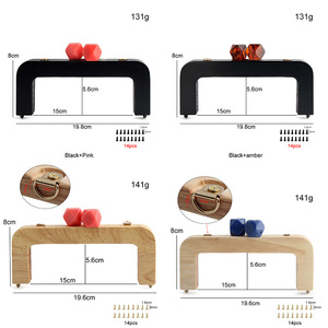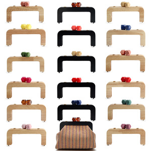 跨境木较糖果色树脂头挂耳口金晚宴包提手木夹框手提包改造木手把