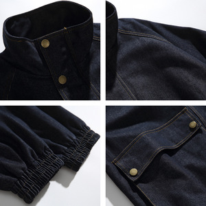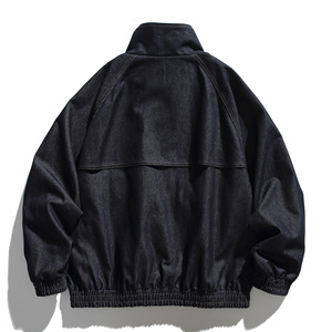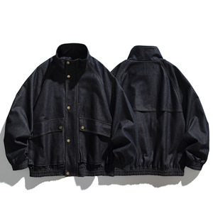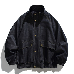 日系复古阿美咔叽大口袋拼接工装夹克男女宽松休闲立领牛仔外套潮