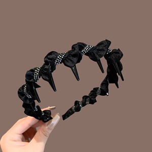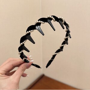 黑色丝绒米珠发箍