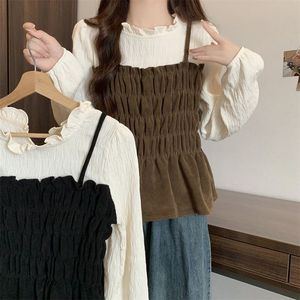气质法式拼接设计韩版两件衬衫女装新款秋季显瘦长袖洋气上衣