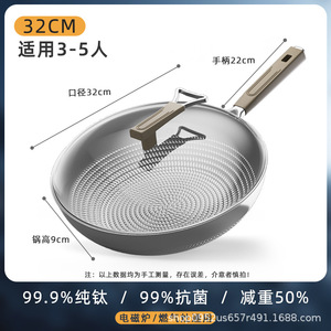 钛盾双面刻字钛锅不粘锅家用炒菜锅具平底三层加厚炒菜锅通用炉灶