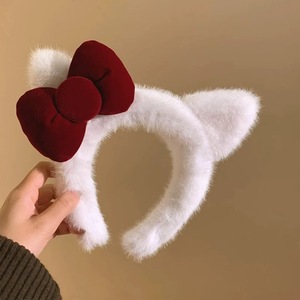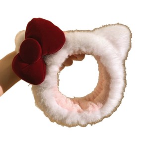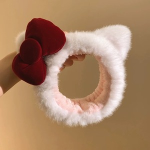 蝴蝶结猫耳朵白色毛绒发箍女洗脸化妆敷面膜头饰发卡头箍厂家批发