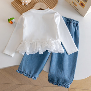 韩国女童秋季休闲牛仔裤新款萌娃可爱洋气爱心立体装饰花边直筒裤