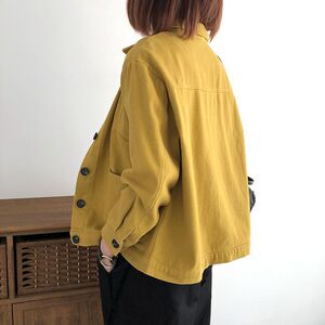 短款休闲外套女秋季新款纯色宽松百搭翻领工装上衣韩版长袖夹克衫
