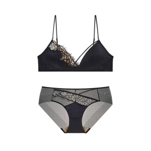 法式纯欲小胸聚拢细肩带内衣蕾丝无钢圈法式三角杯真丝文胸套装