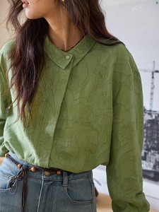 solighter 法式亚麻不对称翻领提花衬衫女秋
