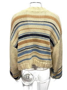跨境欧美2025年早秋新款女装慵懒风v领撞色宽松针织开衫毛衣外套