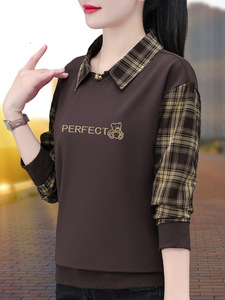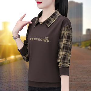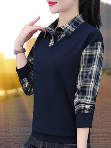 假两件衬衫女长袖春秋新中年妈妈洋气减龄针织遮肚显瘦打底衫上衣