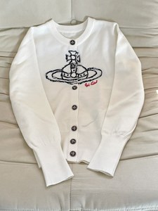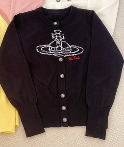 现货西太后修身长袖针织开衫女土星刺绣百搭气质毛衣女上衣代发