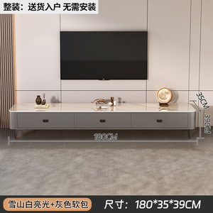 180雪山白岩板+灰柜黑飞机腿电视柜