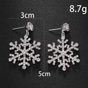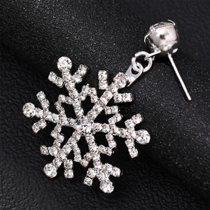 跨境新款可爱雪花耳环小众设计感欧美圣诞节派对水钻耳饰earrings