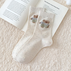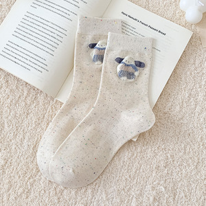 点子纱袜子女可爱卡通毛绒秋季中筒袜百搭堆堆值绒棉袜诸暨袜业批